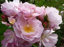 Цветки полумахровые, абрикосово-лилово-розовые с пурпурным отсветом и жёлтыми тычинками. Сорт изысканного цвета. Цветение повторное, с июня до октября.
