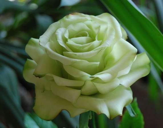Роза Green Tea (Грин Ти). Высокий куст до 90 см с малым количеством шипов. Листья глянцевые, крупные, темно-зеленого цвета. Бутон бокаловидный. При раскрытии диаметр цветка достигает 10 см, по форме напоминает чашу. Количество лепестков 25-30. Окраска лепестков бледно-зеленого цвета. Аромат еле уловимый. В срезанном виде в вазе стоит до 13-14 дней. Устойчивость к заболеваниям высокая.