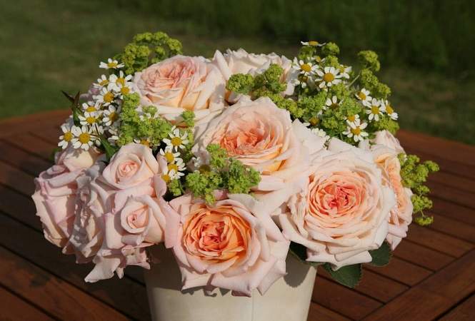 Роза Роза Grossherzogin Luise (Гроссгерцогиня Луиза). Цветки нарядные, густомахровые, крупные (10 см), насыщено-абрикосовые, крайние лепестки светлее, с выемчатым краем. Аромат абрикоса, очень сильный, особенно в полдень и вечером. Цветки на сильных побегах.