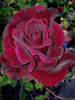 Роза Guinee (Гвини). Темно-красные, средне-махровые (26-40 лепестков) цветки с сильным ароматом, на побегах главным образом одиночные. Цветки крупные, 10 см. Листва крупная, темно-зеленая. Необычная редкая окраска: цвет "кларет".