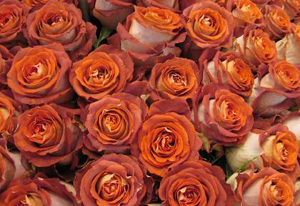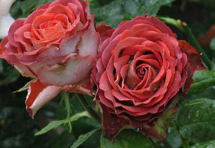 Роза Guinness (Гиннесс). Роза крупноцветковая (11 см), с необыкновенной окраской — основная окраска лепестка терракотово-коричневая, обратная сторона — фарфорово-бежевая. Лепестки плотные, с ажурным вырезом. Листья глянцевые, здоровые, средне-зеленые, с выраженным городчатым краем. Высота куста около 100 см. Нарастает хорошо, цветки не портятся от дождя.