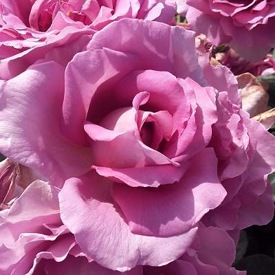 Роза Harry Edland (Харри Эдланд). Бутон темно-фиолетовый с красным оттенком, яйцевидный. Цветок фиолетовый с розово-сиреневым оттенком, чашевидный, махровый, 25-30 лепестков в одном цветке, диаметр цветка 10 см, обладает насыщенным ароматом.