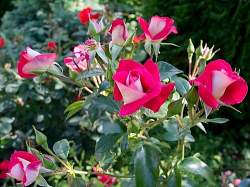 Выдерживает и жару, и проливные дожди очень стойко. Бутоны не мумифицируются, лепестки не спекаются. Всегда в цвету. Устойчивость к черной пятнистости очень высокая. Цветет букетами, размер цветка 12 см.