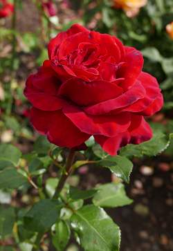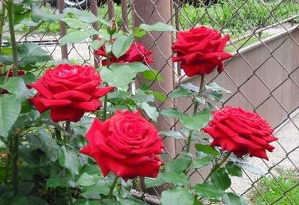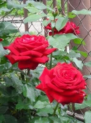 Роза Helmut Kohl Rose (Гельмут Коль Роуз). Цветки большие, диаметром 9-12 см, густомахровые, яркого тёмно-красного цвета. Сильные упругие цветоносы и хорошо растущая глянцевая листва делают эту розу чрезвычайно крепкой и устойчивой. Несмотря на сильную махровость, цветки очень устойчивые к дождю.