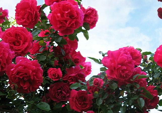 Роза High Society (Хай Сэсаети). Цветки большие, махровые (26-40 лепестков), глубокой розовой окраски, по форме похожи на чайно-гибридные. Аромат очень сильный, как у дамасской розы. Листва блестящая, тёмно-зелёная, устойчивая к заболеваниям. Кусты высотой 350 см, хорошо разветвлённые. Цветение повторное, на побегах прошлого и текущего года.