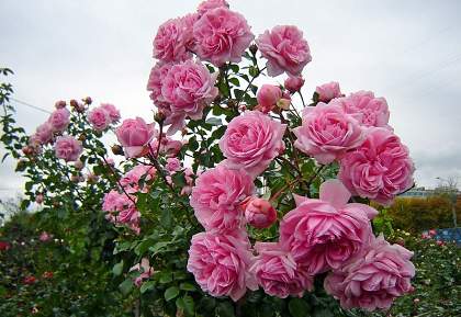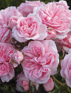 Роза Home and Garden (Хоум энд Гарден). Чисто-розовые цветки, позднее выгорающие до бледно-розовых, крупные, густомахровые, ностальгической формы — чашевидные и квартированные, в кистях. Куст прямостоячий, ветвистый, густооблиственный, до 80 см. Растение очень выносливое и обильно цветущее.