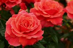 Роза I Am Macmillan (Ай Эм Макмиллан). Яркие лососево-розовые цветки в кистях полностью покрывают весь куст. Высокое качество отдельного цветка и ошеломляющий эффект массового цветения. Средний аромат с пряными нотками. Листья тёмно-зелёные с хорошей устойчивостью к заболеваниям.