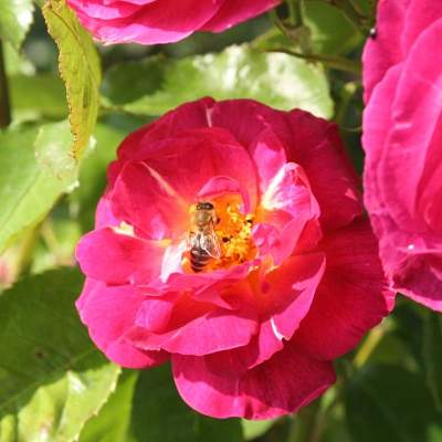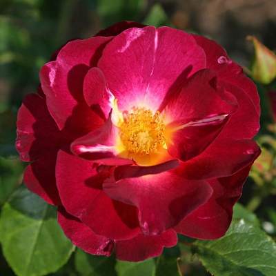 Роза Ile de Fleurs (Иль де Флёрс). Новинка 2019 года. Необычно окрашенный цветок , от темно-розового до насыщенно пурпурного, полумахровый , диаметр 7-8 см, широко раскрытый, показывает яркий желтый центр, ароматный.