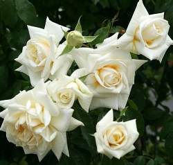 Это до сих пор лучший крупноцветковый клаймбер белого цвета для холодного климата. Цветки появляются поодиночке или в небольших кистях до 3 шт., слегка поникают. Они хорошо переносят дождь и прекрасно сочетаются с темной блестящей листвой.