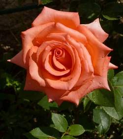 Роза Impulse (Импульс). Куст прямой, сильный, высотой до 120 сантиметров, с очень крепкими побегами. Бутоны бокаловидной формы, тугие, махровые, до 30-35 лепестков в одном бутоне. Цветки появляются одиночно или небольшими группами до 5 цветков в одном соцветии. Цветки имеют красивый, необычный оранжево-лососевый цвет, края внешних лепестков немного закручены, в диаметре цветки достигают 12 сантиметров.