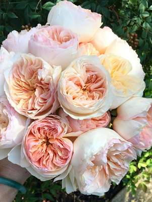 Роза Juliet (Джульетта). Эту розу Остин создавал 14 лет. В истории селекции роз она стала самой дорогой. Первая остиновская срезочная роза. Прекрасная старинная форма, мягкий персиковый цвет, легкий аромат чайной розы. Поистине совершенство. Размер цветков до 10 см. Куст около 110 см в высоту и 75 см в диаметре.