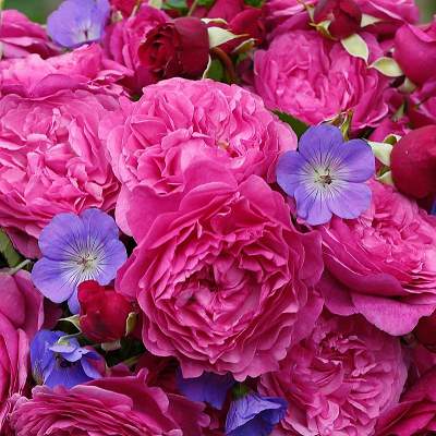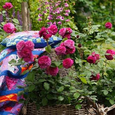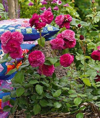 Роза флорибунда Kaffe Fassett Rose (Каффи Фассетт Роуз). Ароматная флорибунда с крупными (10 см) махровыми цветками розовато-лилового цвета. Цветки собраны в соцветия до 6 шт. Аромат ощутимый, цитрусовых и манго.
