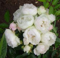 Цветки небольшие, полумахровые, собраны в крупные соцветия на невысоком разрастающемся вширь кусте с мелкой темно-зеленой глянцевой листвой. Аромат слабый. Сорт хорош для переднего плана бордюра и контейнерной культуры. Прекрасный почвопокровный сорт.