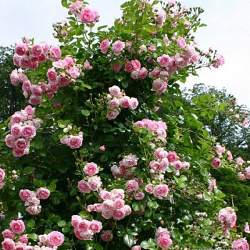 Роза плетистая (клайминг) Kiss Me Kate (Кисс Ми Кейт) имеет цветки диаметром 10 см, махровые, ностальгические, розовые, прекрасной ностальгической формы. Аромат лимона, интенсивный, приятный. Листва высокоустойчивая к чёрной пятнистости и мучнистой росе.