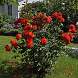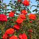Роза Kordes Brillant (Кордес Бриллиант). Цветки сияющего оранжево-красного цвета, полумахровые, чашевидные, появляются в крупных кистях, долго держатся, очень устойчивы к дождю.