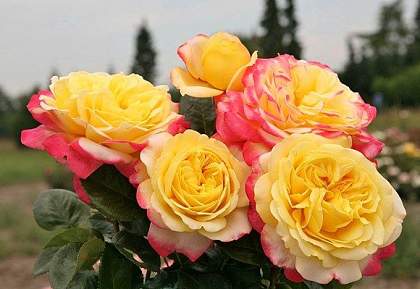 Роза Kordes Jubilee (Кордес Юбилее). Сорт создан к 125-летию фирмы Кордес. Густомахровые цветки с плотно набитой серединкой — желтые с ярко-розовыми или красными крайними лепестками. Интенсивный аромат с нотками ванили, гелиотропа и жасмина. Куст высокий, прямостоячий, с крепкими побегами. Сорт-шедевр!