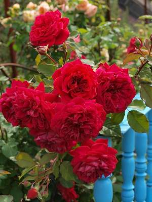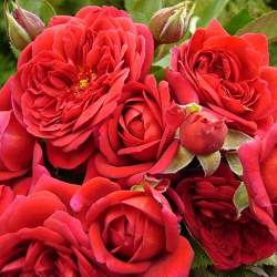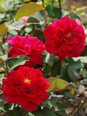 Роза L'Ami des Jardins (Лами де Жардан). Идеальная роза для составления ароматных букетов. Цветки махровые, большие, плоской блюдцевидной формы, красно-малиновые, в соцветиях по 5-7. Аромат средний. Кусты высотой 120 см, шириной 60 см. Цветение повторное. Роза если и болеет, то в неблагоприятные годы. Для одиночных и групповых посадок.