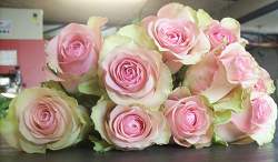 Роза La Belle (Ла Бэль). Цветок из 17-25 лепестков, классической формы, светло-розово-зеленой цветовой гаммы, преимущественно одиночное расположение на побегах. Куст почти без шипов.