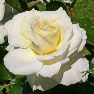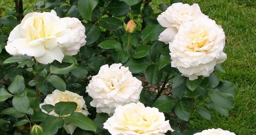 Роза La Perla (Ля Перла). Прекрасный сорт, один из самых устойчивых, относящихся к группе чайно-гибридных. Изысканный достаточно плотный бутон окрашен в яркий и в то же время нежный, кремовый цвет с легким золотистым отливом. Цветок имеет красивую тонкую бокаловидную форму, диаметр которой составляет приблизительно 11-13 см. Количество мягких, махровых лепестков в одном крупном цветке варьируется от 19 до 34 штук. Аромат у сорта легкий, довольно-таки приятный и непринужденный.