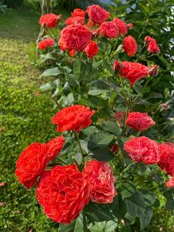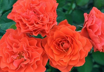 Роза Lady of Belgrade (Леди оф Белград). От этой розы дух захватывает. Форма исключительная — как у камелии, цвет — необыкновенный, кораллово-оранжевый, необычный. Цветки густомахровые (80-90 лепестков), в соцветиях по 5-7. Лепестки мягкие нежные, с волнистым краем, что придаёт цветкам особый визуальный эффект. Цветение непрерывное, до сентября.