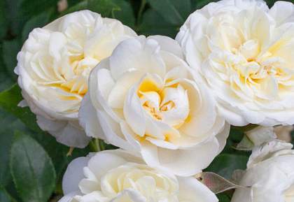 Кусты компактные, около 60-80 см, с крепкими упругими стеблями, которые не прогибаются под весом массивных соцветий. Насыщенный темно-зеленый цвет листвы служит прекрасным оттеняющим фоном белых цветков. Цветение розы обильное, повторное. Устойчивость к заболеваниям и морозостойкость высокие.