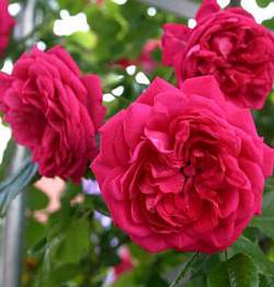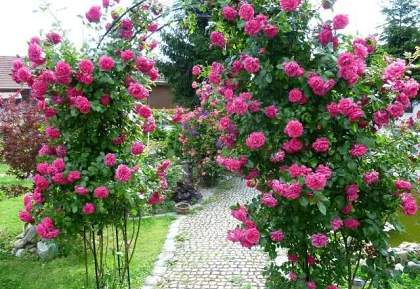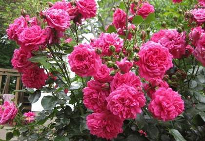 Роза плетистая Laguna (Лагуна). Сорт очень устойчивый к заболеваниям, с прекрасным ароматом. Цветки ярко-розовые, густомахровые, в кистях по 6-8 шт. Листва темно-зеленая, густая, блестящая, средних размеров. Аромат очень сильный, фруктовый. Куст прямостоячий, ветвистый, до 250 см.