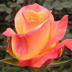 Форма бутона – бокаловидная, с вытянутым центром. Двухцветная окраска лепестков – основной цвет кремово-жёлтый, который плавно смешивается с персиковым оттенком. В полном раскрытии размер цветка средний. Внешние лепестки загибают свои края, что придает необычайное очарование этим удивительно нежным цветам.