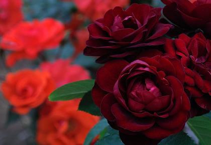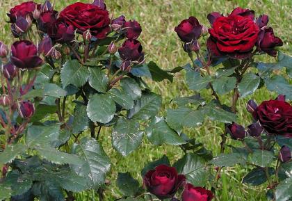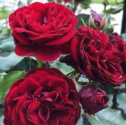 Идеальная маленькая флорибунда: устойчивая к заболеваниям, яркая и обильно цветущая. Она практически не ароматная, но ничто не сравнится с насыщенными темно-красными цветками, оттененными темной блестящей листвой. Молодая листва оливковая с бронзовым отливом. Цветки собраны в кисти по 10-20 шт. и прекрасно переносят солнце и дождь. Цветки долго стоят в срезке.
