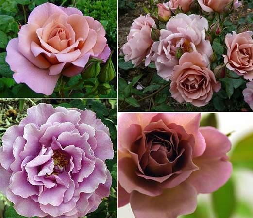 Роза Lavender Pinocchio (Лавендер Пиноччио). Одна из самых необычных флорибунд. Внешние лепестки и кончики каждого лепестка обычно лавандовые, а внутренние лепестки и основания лепестков бледно-коричневые, с оттенками шоколада, оранжевыми, кофейными и серыми тонами.