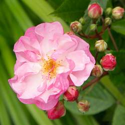 Роза Lavender Siluetta (Лавенде Силуэтта). Одна из пяти разновидностей новой коллекции Siluetta фирмы W. Kordes' Söhne. Многократно цветущий плетистый рамблер с маленькими цветками, собранными в крупные соцветиях на изогнутых побегах, который хорошо растет на опорах и очень подходит для небольших садов. Его первое цветение в горшке на умеренной высоте делает его идеальным для использования в контейнерах.