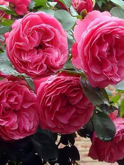 Роза Leonardo da Vinci (Леонардо да Винчи). Цветки густомахровые, старинной формы, темно-розовые (цвета бенгальской розы), устойчивы к дождю. Цветение обильное и продолжительное.