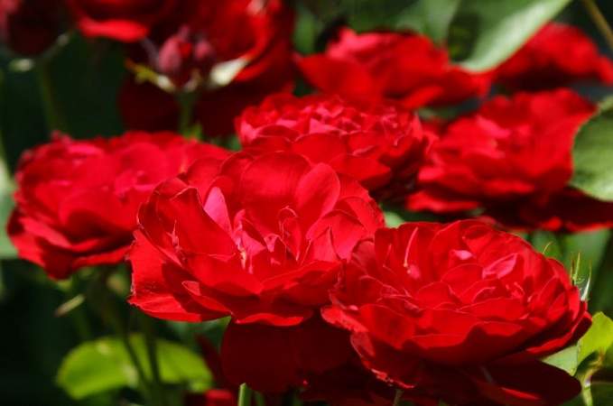 Роза флорибунда Lilli Marleen (Лили Марлен). Яркая, аж светится! Красные ароматные цветки Lilli Marleen популярны уже более 40 лет. Даже сегодня нет сорта, который мог бы конкурировать с ее окраской и аккуратностью. Цветки появляются в кистях по 3-15 шт. и очень хорошо держат цвет.