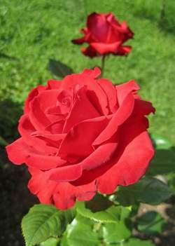 Роза Lovely Red (Лавли Ред). Роза обладает сильной устойчивостью к черной пятнистости и мучнистой росе. Листья крупные, темно-зеленые, кожистые. Цветки - прекрасные бокалы темно-красного цвета, до 10 см в диаметре, махровые. Аромат слабый. Куст прямой. Цветет в течение всего сезона до заморозков. компактный.