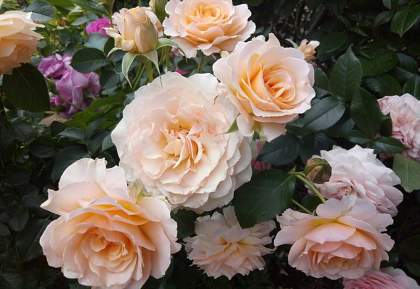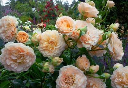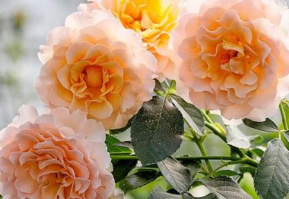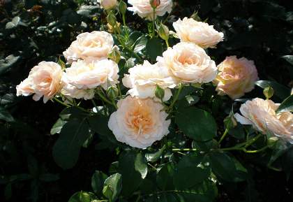 Куст до 1,5 м высотой с темно-зеленой листвой, кремово-абрикосовыми цветами до 10 см величиной. Цветение повторное. Для бордюров, смешанных и одиночных посадок, маленьких клумб, контейнеров, хорошо смотрится в штамбовой форме.
