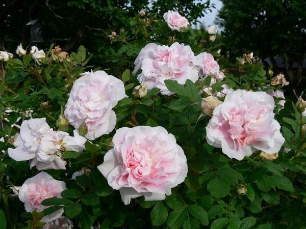 Роза Martin Frobisher (Мартин Фробишер). Этот сорт был первой розой из серии Explorer (Иксплоре) — серии супер-морозостойких сортов, выведенных Министерством Сельского хозяйства Канады. Это до сих пор одна из лучших роз серии. Практически без шипов, цветки очень симпатичного молочно-розового цвета, с оборотной стороны лепестки чисто-белые, что лучше всего видно, когда они загибаются внутрь, формируя пуговку. Розовый цвет ярче всего в центре цветка.