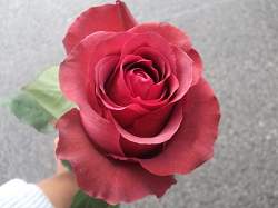 Роза Matilda (Матильда). В ней все говорит о силе: крупный бутон на жестком крепком стебле, достигающим метровой высоты, даже в срезанном состоянии очень долго не вянет. Сражает нас своим пьянящим запахом. Имеет исключительный цвет: красно-бордовый с шоколадным оттенком. Цветки 11 см.