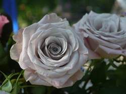 Роза Menta (Мента). Очень здоровая роза. Окраску любители роз называют серой. А оригинаторы описывают как лунно-фиалковый с розоватым оттенком. Аромат не слишком сильный, напоминает мимозу. Чашевидный бутон может насчитывать около 45-55 немного острых на кончиках махровых лепестков. Цветок в полном роспуске способен достигнуть размера в 12-15 см в диаметре.