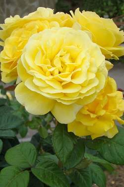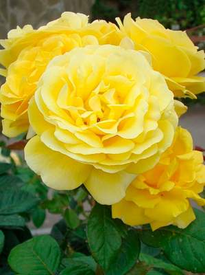 Роза чайно-гибридная Michelangelo (Микеланджело). Роза из серии Romantika от Мейяна, с цветками старинной формы и сильным ароматом. Цветки крупные (11 см), чистого золотистого цвета, постепенно выгорают до лимонно-желтых или кремовых по краям. Чашевидные, густомахровые, появляются по одному или в кистях до 7 шт.