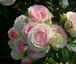 Роза Mimi Eden (Мими Эден). Восхитительный романтический спрей-цветок двухцветной окраски - белый с зеленоватым оттенком на наружных лепестках и нежно-розовый в середине, шарообразный, некрупный, 3-4 см в диаметре, густомахровый, собранный в соцветия по 5-10 шт. Период цветения - с конца июня до первых заморозков, постепенное в течение всего сезона, обильное.