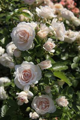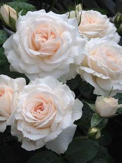 Роза Miss Dior (Мисс Диор). Обладает великолепным ароматом. Элегантной красоты, жемчужного цвета с оттенком слоновой кости цветы этой розы имеют старомодный шарм, они махровые до 40 лепестков. Обильное цветение до самых заморозков, густой энергичного роста куст, красивая зелёная листва, устойчивая к заболеваниям. Кусты аккуратные, листва темно-зеленая, здоровая и нарядная.