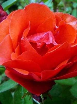 Роза Morden Fireglow (Морден Файерглоу). Эта канадская роза пользуется популярностью за свою высокую зимостойкость и необычный цвет. Ни у одной другой розы из серии Explorer и Parkland нет таких сияюще красных цветков, как у Morden Fireglow. При ближайшем рассмотрении оказывается, что лепестки ярко-оранжево-красные, с алой подложкой. Цветки чашевидные, полумахровые. Появляются по одному или в кистях до 5 шт., затем образуются крупные округлые плоды.