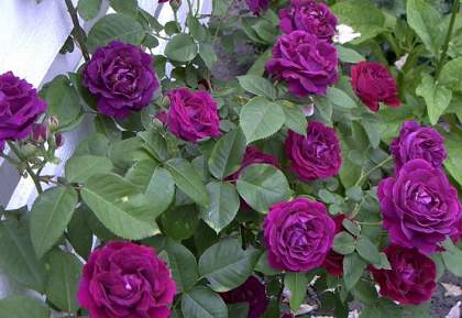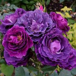 Роза Mysterieuse (Мистерьез). Цветки чашевидные, умеренно-махровые (в полном роспуске показывают серединку), яркие, фиолетовые, сиреневые или красновато-лиловые с более светлыми полосками, в небольших соцветиях. Аромат сильный. Цветение повторное, в течение сезона. Кусты энергичные, сильные, высотой 100-120 см.