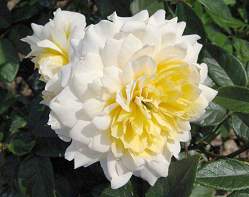 Цветки махровые, формой похожи на кактусовые георгины, кремовые, центр абрикосово-жёлтый, ароматные. Цветение непрерывное, до заморозков.