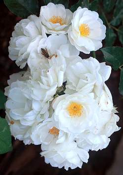 Роза Neige d'Ete (Нэж д'Этэ). Белые махровые чашевидные цветки с легком ароматом. Сорт очень стоек к дождю и ветру, очень зимостоек (пятая зона). Высота 120-150 см.