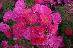 Цветы малиново-розовые, полумахровые. Листва вначале красновато-зелёная, позднее тёмно-зелёная, средних размеров, очень блестящая. Куст широкий, ветвистый, около 60 см в высоту и до 80 см в ширину. Обильное первое цветение, очень устойчива к заболеваниям. Повторное цветение.