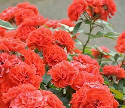 Роза Orange Meillandina (Оранж Мейландина). Сорт, характеризующийся активным ростом и пышным цветением. На кусте, достигающем нескольких метров в длину, всегда много крупных ярких цветков. Листва на кусте по своей красоте ни в чем не уступает цветкам — она такая же крупная, блестящая и здоровая. Куст без цветков застать практически невозможно.