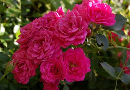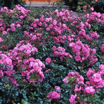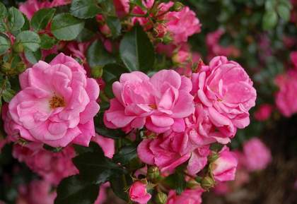 Роза Palmengarten Frankfurt (Палменгартен Франкфурт). Очень красивая роза, которую можно выращивать как почво-покровную или ландшафтную. Цветение очень обильное, в кистях по 10-30 штук. У цветка преобладает исключительно чашевидная форма, а также она имеет светло-розовый с ярко-сиреневым оттенком окрас. Бутоны полумахровые, диаметром 4 см. Лепестки в количестве 17-28 штук имеют немного скрученную форму. Аромат едва уловимый.