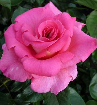 Листья крупные, темно-зеленые, глянцевые. Роза очень устойчива к болезням. Куст мощный, высотой 250-300 см, шириной 100-150 см.