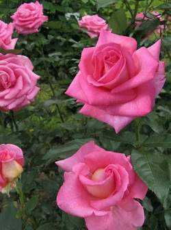 Роза плетистая Parfum Royal (Парфюм Руаяль). Клайминг. Цветки диаметром 14 см, махровые (35 лепестков), двухцветные — розовые с серебристым реверсом, одиночные или в соцветиях до 5 шт. Лепестки закручены по спирали. Аромат сильный, фруктовый. Цветение повторное, до заморозков.