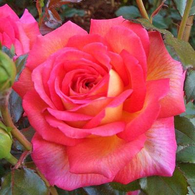 Роза Parfume de Grasse (Парфюм де Грас) эта роза радует своей красотой и ароматом. Бутоны открываются медленно. Цветки чаще всего одиночные, диаметром 11 см, махровые (до 60 лепестков), чашевидные. Лепестки с внутренней стороны вишнёво-красные, снаружи - жёлтые. Аромат лимонный, сильный. Цветение обильное, повторное, в течение лета. Кусты пряморослые, компактные, очень сильные, высотой 80-90 см, шириной 50 см. Листва тёмно-зелёная, полуглянцевая, высокоустойчивая к заболеваниям. Рекомендуется для одиночных и групповых посадок и для срезки.